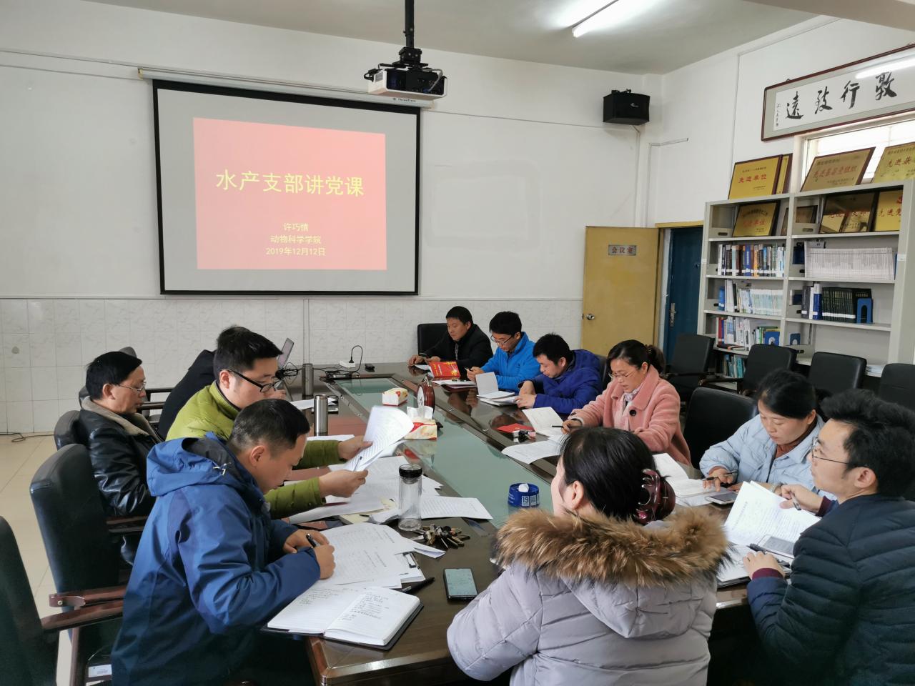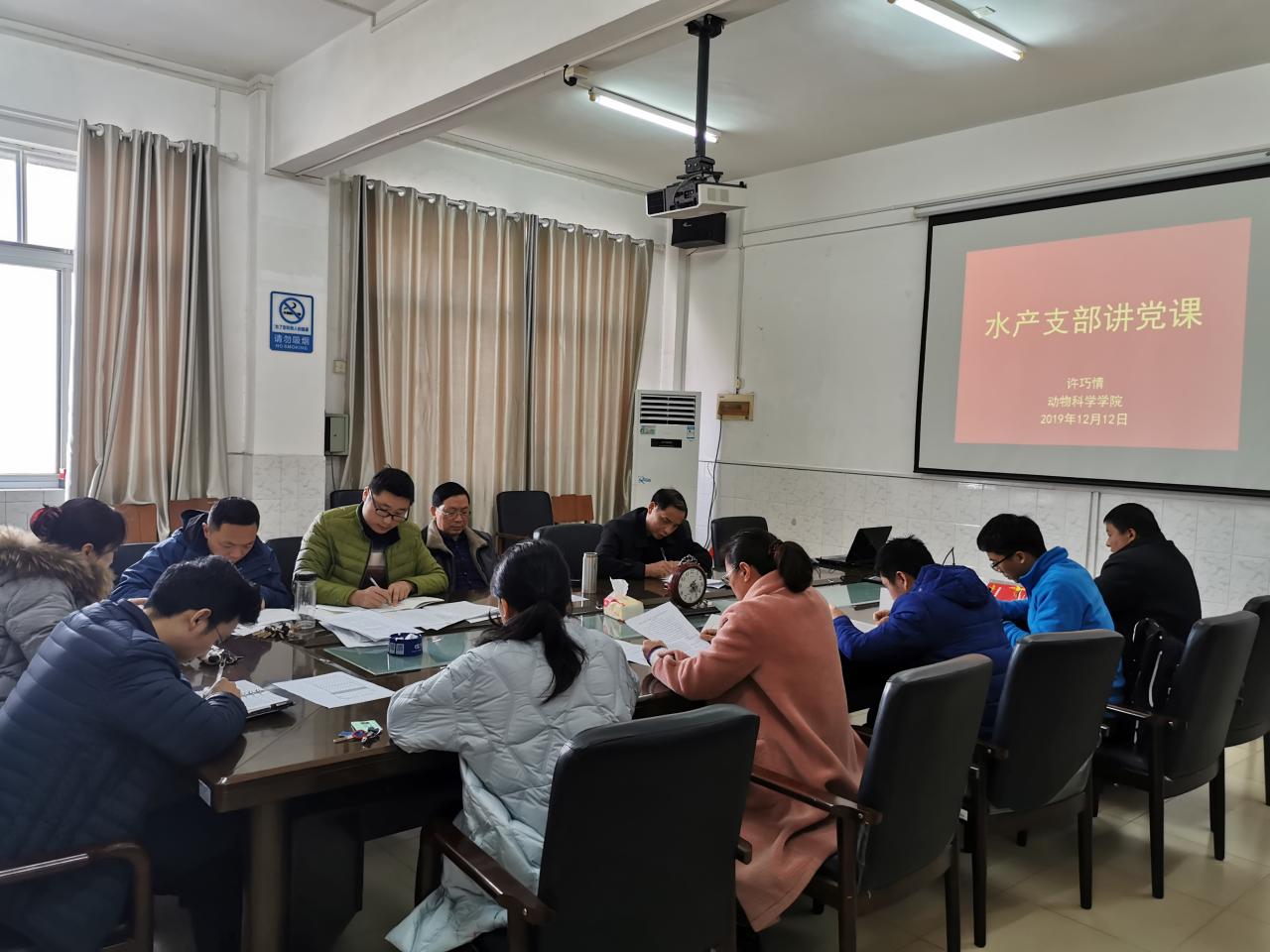 2019年12月13号13:00点在5-807会议室许巧情副院长给水产系党支部全体党员做了一场《积极动员,潜心钻研,静心撰写,努力提高英国365官网国家自然基金命中率》的党课。