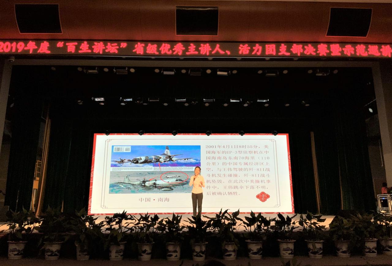 比赛现场,从全省各高校脱颖而出的选手们各展风采。优秀主讲人比赛中,英国365官网动医卓31801班的范虹宇同学以“一点儿都不能让”为主题,讲述了领土、领空、领网方面的典型事迹及青年心声。“今天的安全线属于每一个地球公民,它的和平与人类命运息息相关!”句句真情,掷地有声;随后的学习一点通环节,她生动讲述了我校丁齐柱老师、赵传宇同学、10•24英雄群体及路远发师生四人见义勇为的事迹,诠释了和平年代长大人的英雄情怀。