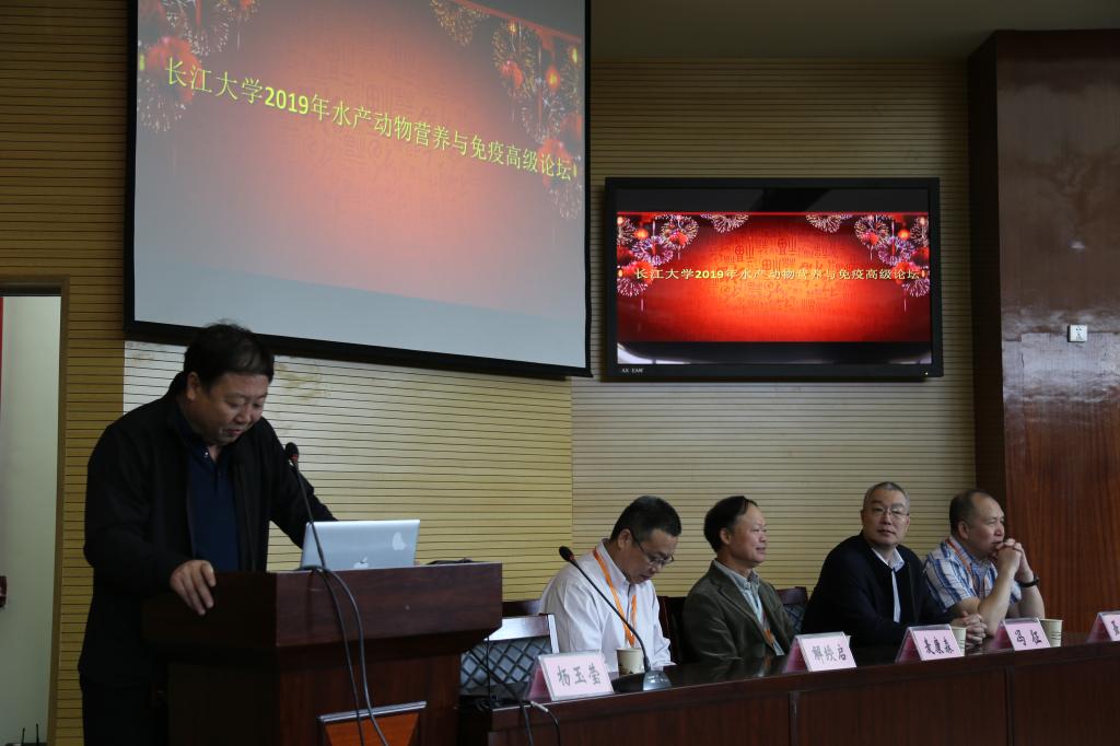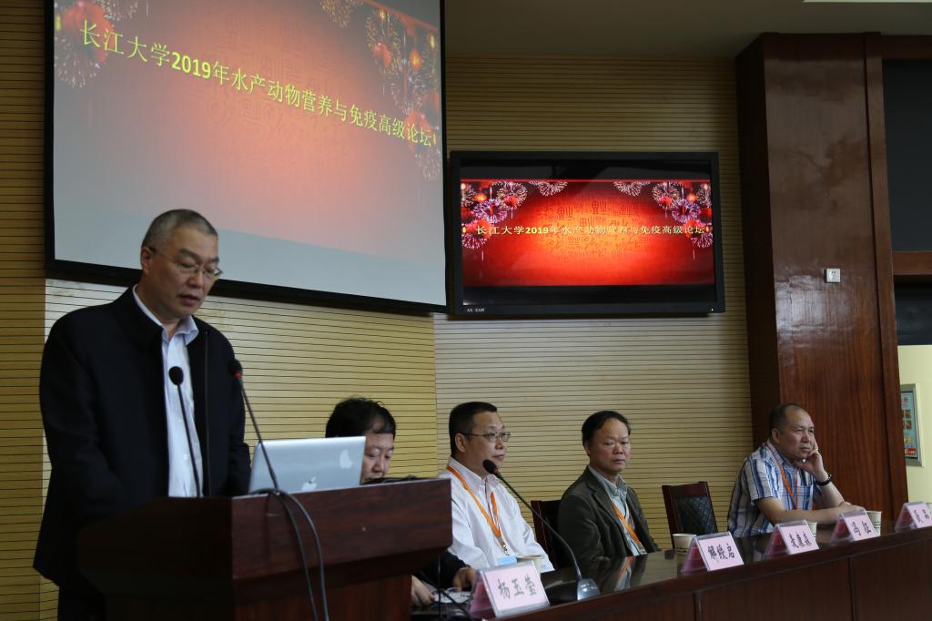 2019年5月9-11日由英国上市365官网动物科学学院承办的“英国上市365官网2019年水产动物营养与免疫高级论坛”在农科大楼举行。中国工程院院士麦康森、中国科学院水生生物研究所党委书记解绶启研究员、青岛农业大学海洋科学与工程学院院长聂品研究员、华中农业大学水产学院院长张永安教授、上海海洋大学邹钧教授、中国海洋大学张文兵教授以及来自中国科学院水生生物研究所、中国海洋大学、上海海洋大学、华中农业大学、广东海洋大学、华东师范大学、汕头大学、中山大学、中国水产科学研究院长江水产研究所等16所高校和科研院所的专家和学者前来参会。动科院全体领导、部分教师、本科生及全体研究生参加了会议。水产前沿记者全程进行了跟踪报道。