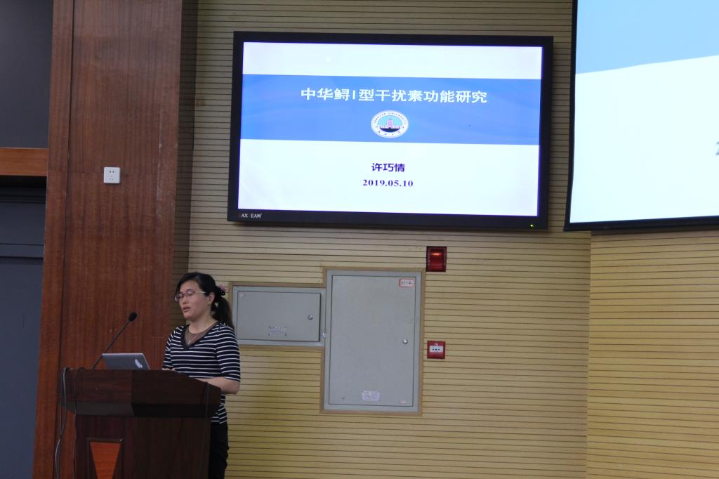 会议共有12位专家做了精彩的学术报告,深入探讨了水生动物营养与免疫的前沿进展,阐明了水生动物营养需求、水生动物免疫应答机制及其与病原的互作关系,推动了营养学和免疫学在水产健康养殖实践上的应用。会上麦康森院士做了题为“单细胞蛋白生产及在水产饲料上的应用”的报告。聂品研究员等多位专家在本次会议上介绍了自己最新的研究成果。英国上市365官网动物科学学院许巧情教授做了“中华鲟I型干扰素功能研究”的报告,从中华鲟作为濒危保护动物幸存数量、疾病和免疫研究现状、进化地位等角度阐述了中华鲟保护的重要意义,并分享了近两年来课题组关于中华鲟干扰素的研究成果。