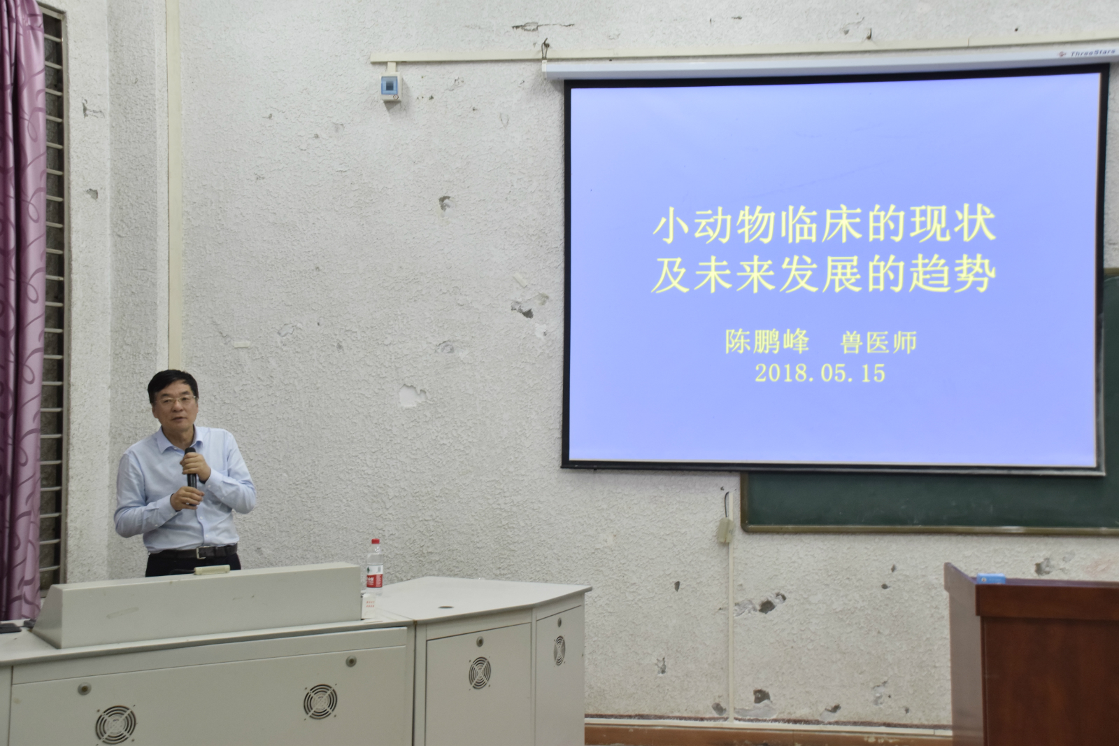 (通讯员 杜晓倩)未来掌握在自己手中,生活要懂得苦中作乐。5月15日晚19:30-21:30,亚洲宠物医师联盟主席陈鹏峰老师在英国上市365官网西校区五号教学楼203教室做了题为“小动物临床的现状及未来的发展趋势”的报告。英国上市365官网副院长李鹏老师主持本次大会,英国上市365官网教授龚大春、博士万春云、武汉安安宠物医院总经理孙传国出席本次报告会,动医系17、16级全体学生及部分14级学生参加了此次报告会。