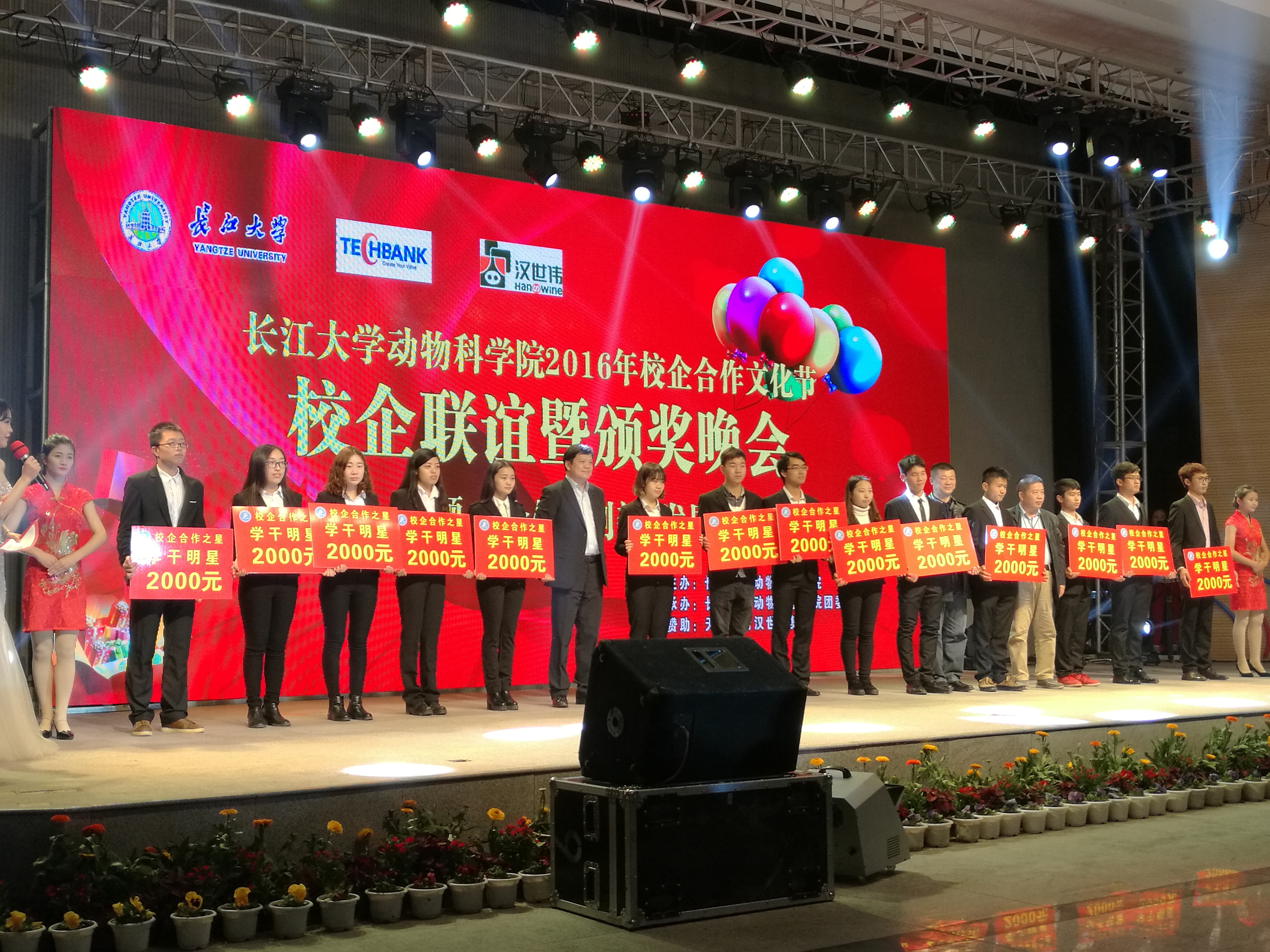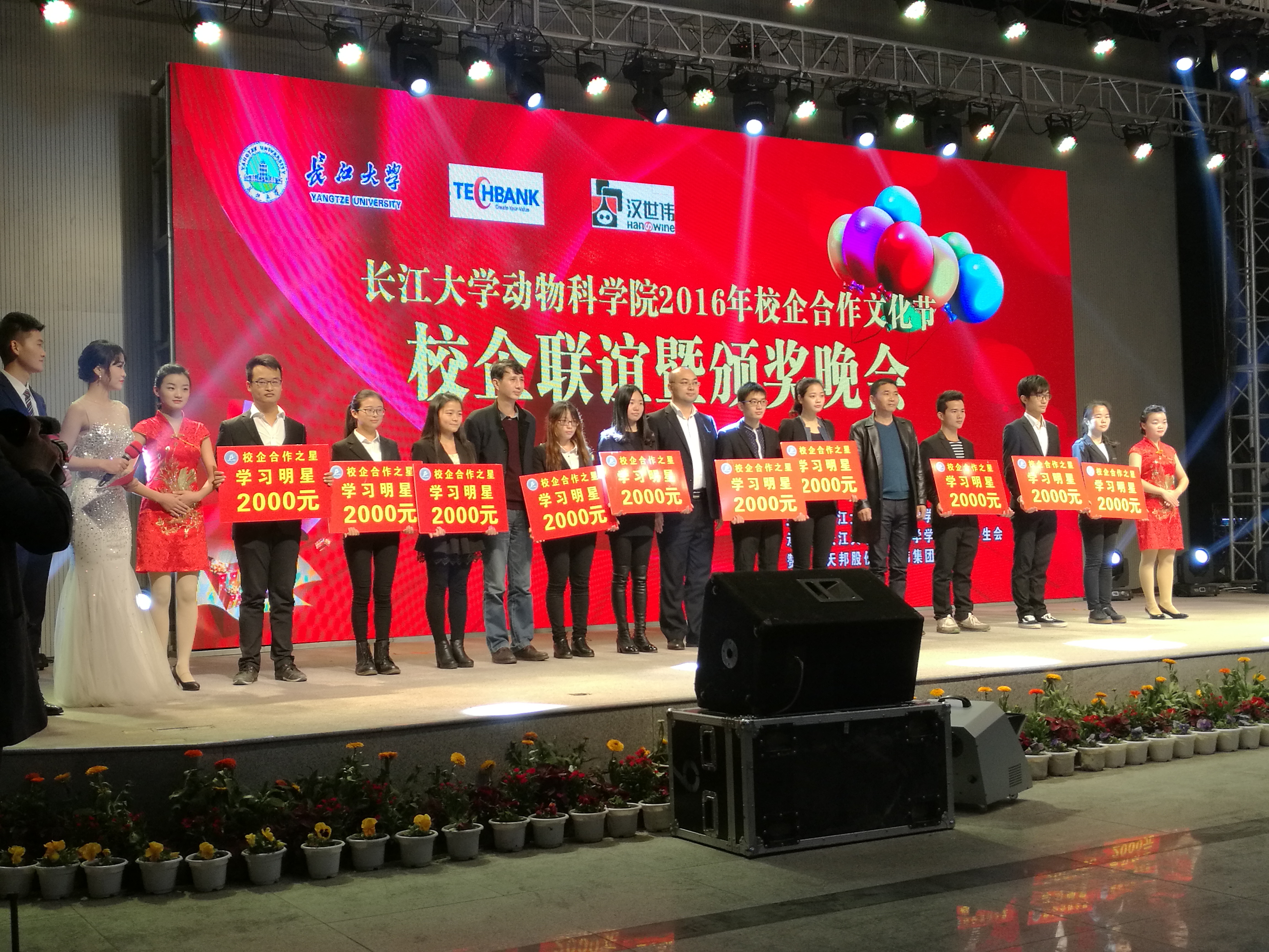 当晚,与会代表与动科院师生一起还观看了由英国上市365官网精心准备的校企联谊暨颁奖晚会,晚会上,副院长许巧情致辞,副书记王雨宣读表彰文件,对校企合作之学习明星、科研明星、自强明星、学干明星进行表彰,校企合作单位的领导为获奖学生、副校长郑军为获园丁奖的老师进行了颁奖。