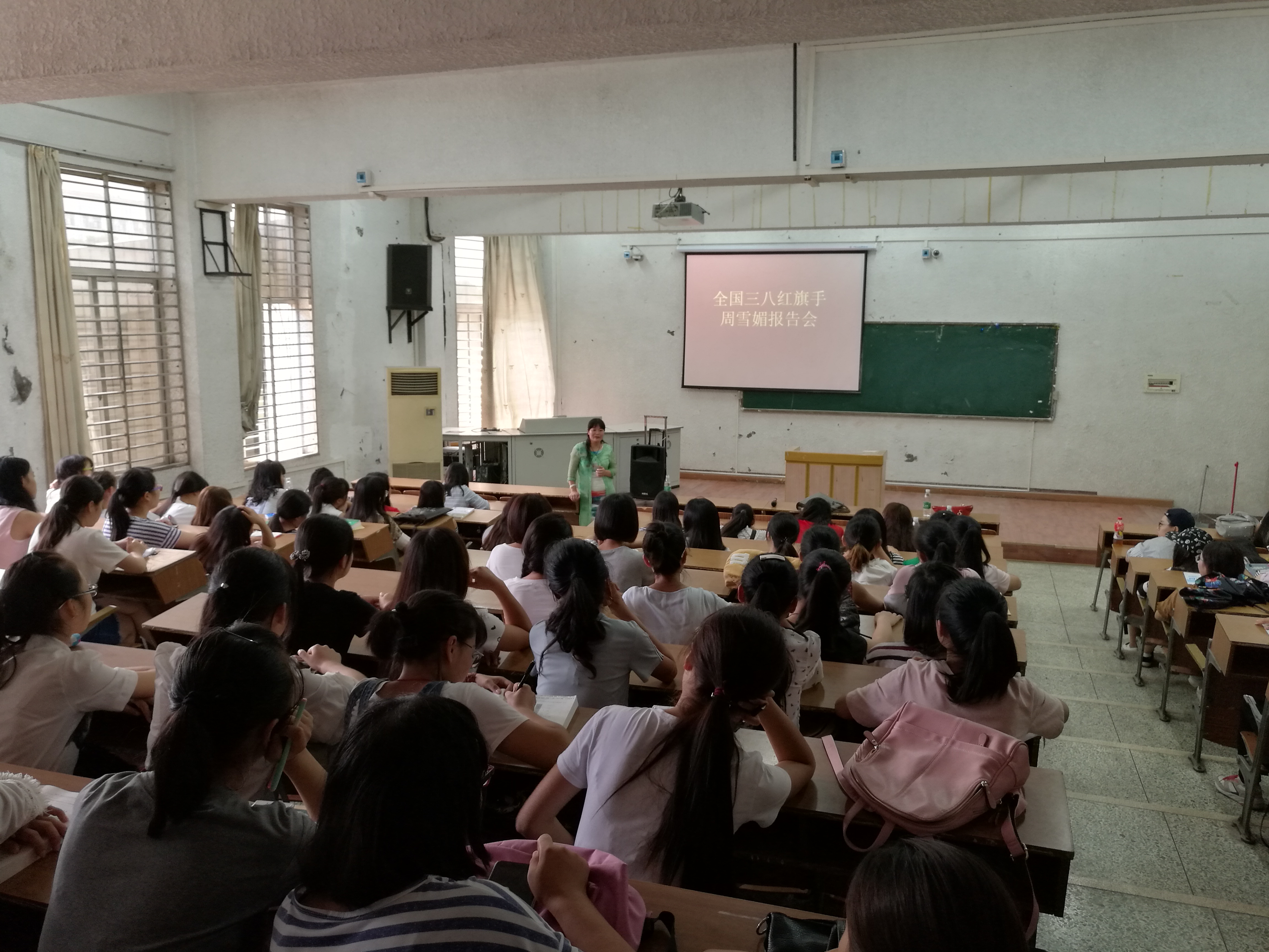 8月31日下午4:00时在5教203教室,全国三八红旗手、英国365官网99届校友周雪媚应邀到英国365官网作报告。