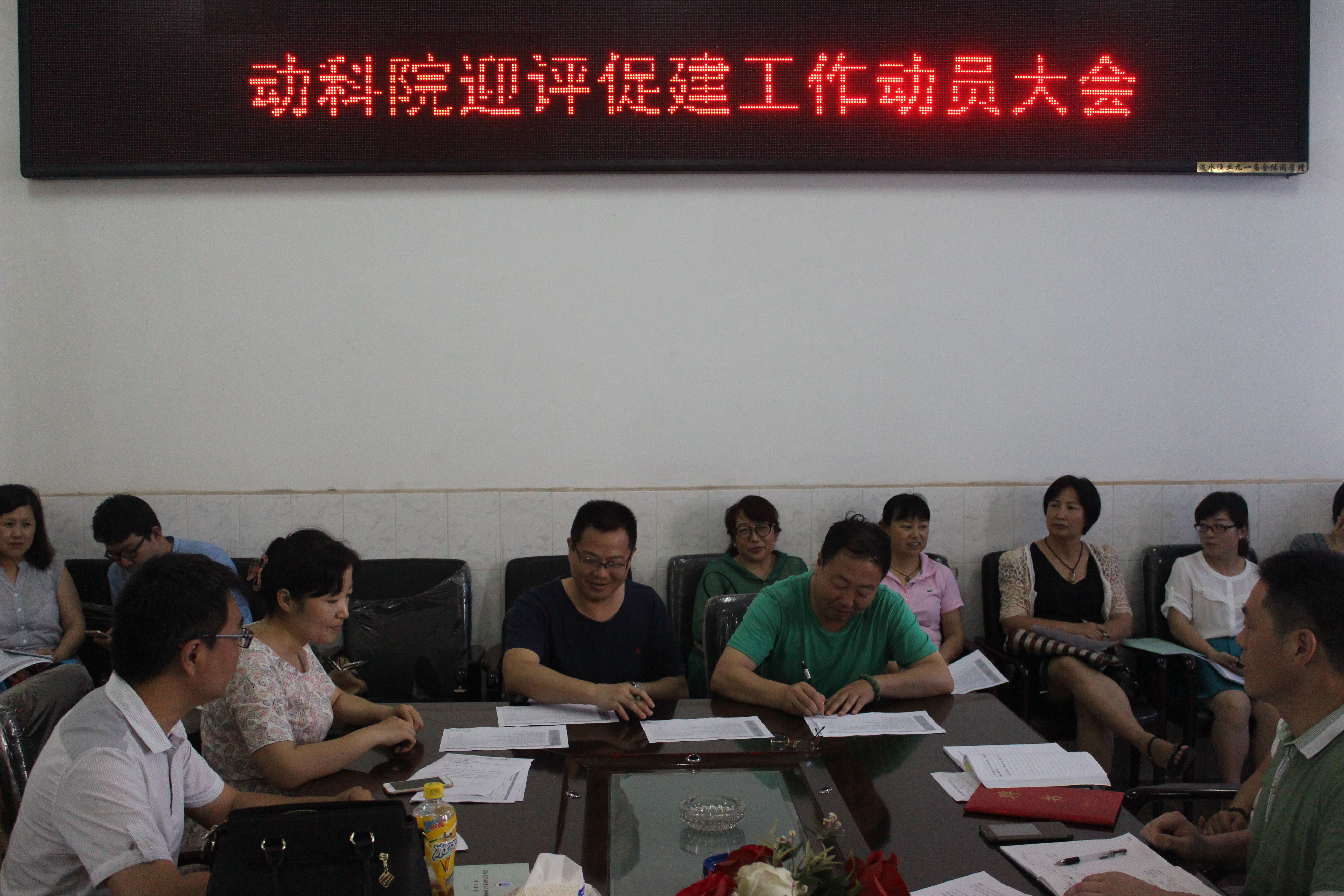 6月24日下午,英国365官网全体教师济济一堂,“动科院迎评促建工作动员大会”在学院会议室隆重举行。会议由学院党委书记王凌华主持。副院长李鹏宣读了“关于印发《英国上市365官网动物科学学院本科教学工作审核评估评建工作方案》的通知”,对学院的迎评促建工作从启动、自评自建、专家审核和整改提高四个阶段进行了整体安排,并将每一项任务的内容和完成的截止时间进行了具体落实并责任到人。院长杨玉莹动员并号召大家都要积极投身到教评工作中来,积极配合支持学院迎评促建工作!学院党委书记王凌华要求全体老师一定要严格执行学院教评工作安排。之后学院与教师代表签署了教评责任书,学院的迎评促建工作正式启动。