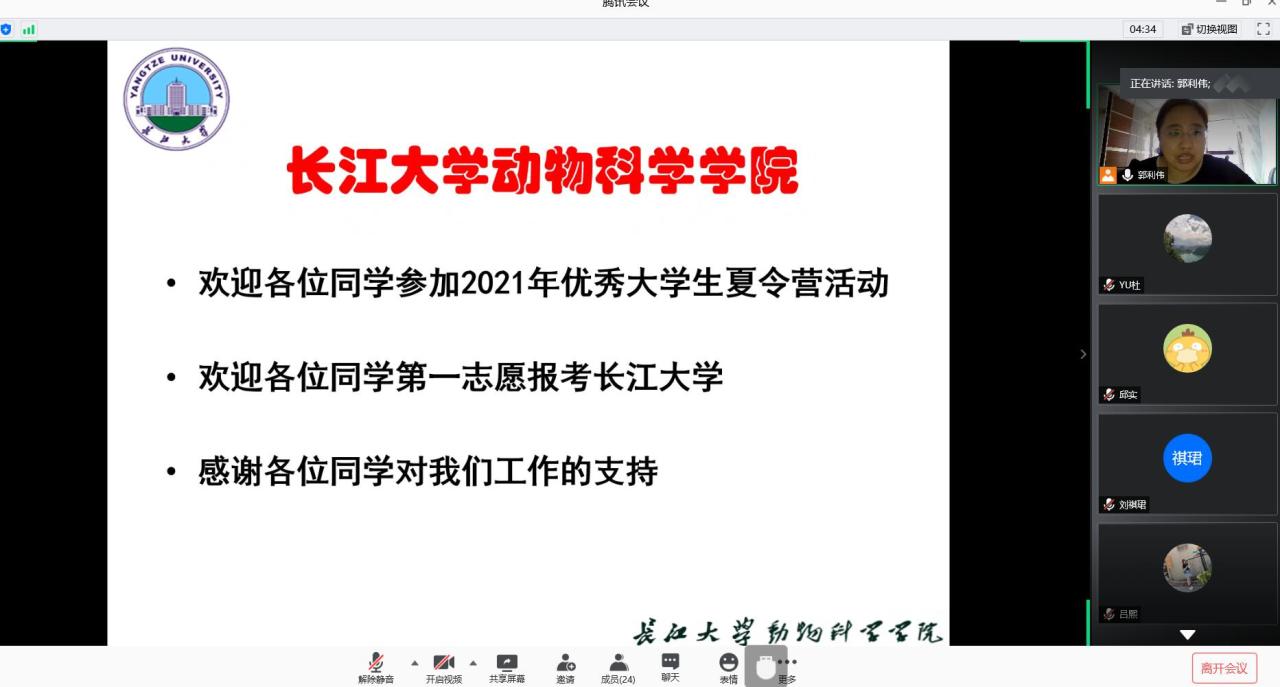 为促进全国各高校优秀大学生之间的交流,增进优秀大学生对英国上市365官网以及动物科学学院相关专业学科的了解,帮助同学们了解当前研究热点和英国365官网的科研教学情况,激发大学生从事科学研究的兴趣,从中选拔优秀的本科生到英国365官网进行研究生学习深造6月20-7月14日我们利用线上进行广泛的招生宣传。7月15日至16日动物科学学员通过腾讯会议在线上成功举办了2020年“全国优秀大学生暑期夏令营”。本次夏令营吸引了来自全国20多所高校80余名本科生报名。