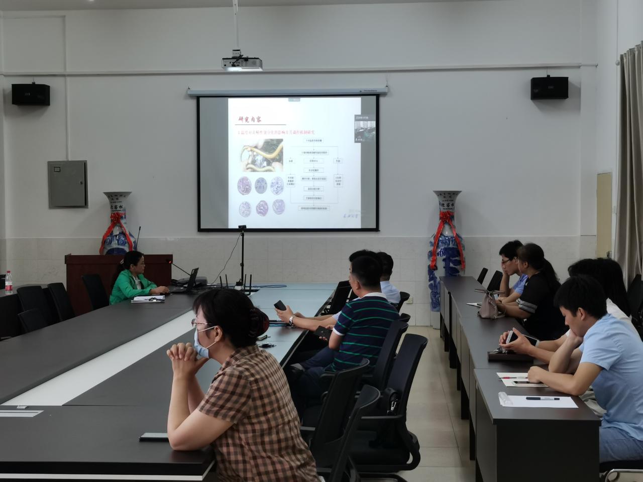 7月16日上午由动科系系主任李伟国老师主持,优秀研究生代表王后坤(指导教师:杨玉莹教授)、李先强(指导教师:王家乡教授)、陈融(指导教师:郭利伟副教授)、赵梦杉 (指导教师:杨丰利副教授) 做科研介绍,师生就相关问题充分讨论。