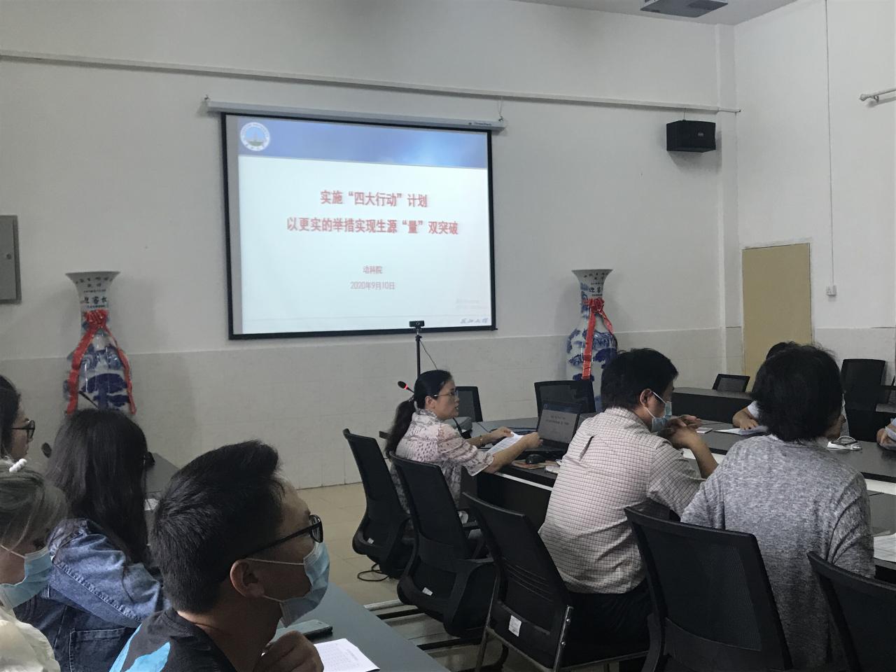 主管研究生科研工作副院长许巧情做了报告,报告中详细讲解了学校关于研究生招生的“四大行动”计划,以及英国365官网为 “四大行动计划”的推进所做出的一系列举措,包括校内动员会、校外云端宣讲、暑期夏令营、线上新媒体宣传等,就学校有关2021年研究生招生的奖励政策等进行了解说。