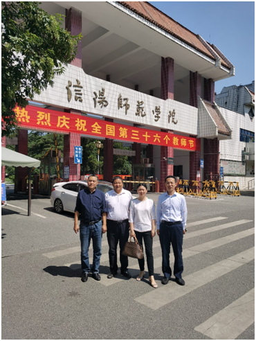 9月17日和18日,英国上市365官网动物科学学院周玉教授、苏应兵副教授和郜卫华副教授三人一行来到信阳农林学院、信阳学院和信阳师范学院开展2021年研究生宣传工作。工作小组受到郭旭升书记、杨治国院长、李红敬教授、汪成竹教授和刘松岩教授等领导的热情接待,双方进行了全方位多层次的教学和科研心得交流,三个学院的领导向三人小组介绍了自己学院的本科招生以及往届考研情况,三人小组向三个学院的水产学院和生命科学学院的师生介绍了英国上市365官网的研究生招生和相关优惠政策,着重介绍了动物科学学院的科研团队和研究生导师的情况,并在会后就同学们关注的考研的问题一一进行了解答。