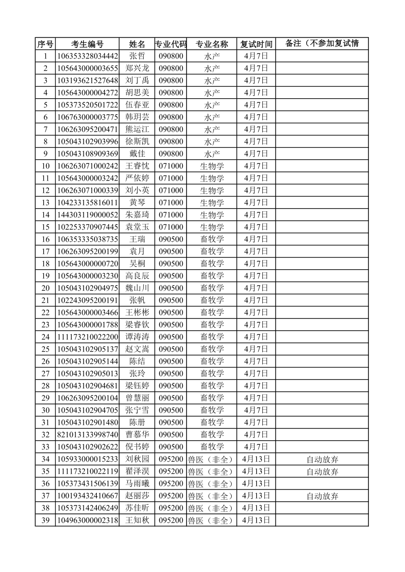 英国上市365官网动物科学学院2023年硕士研究生招生调剂复试考生名单公示