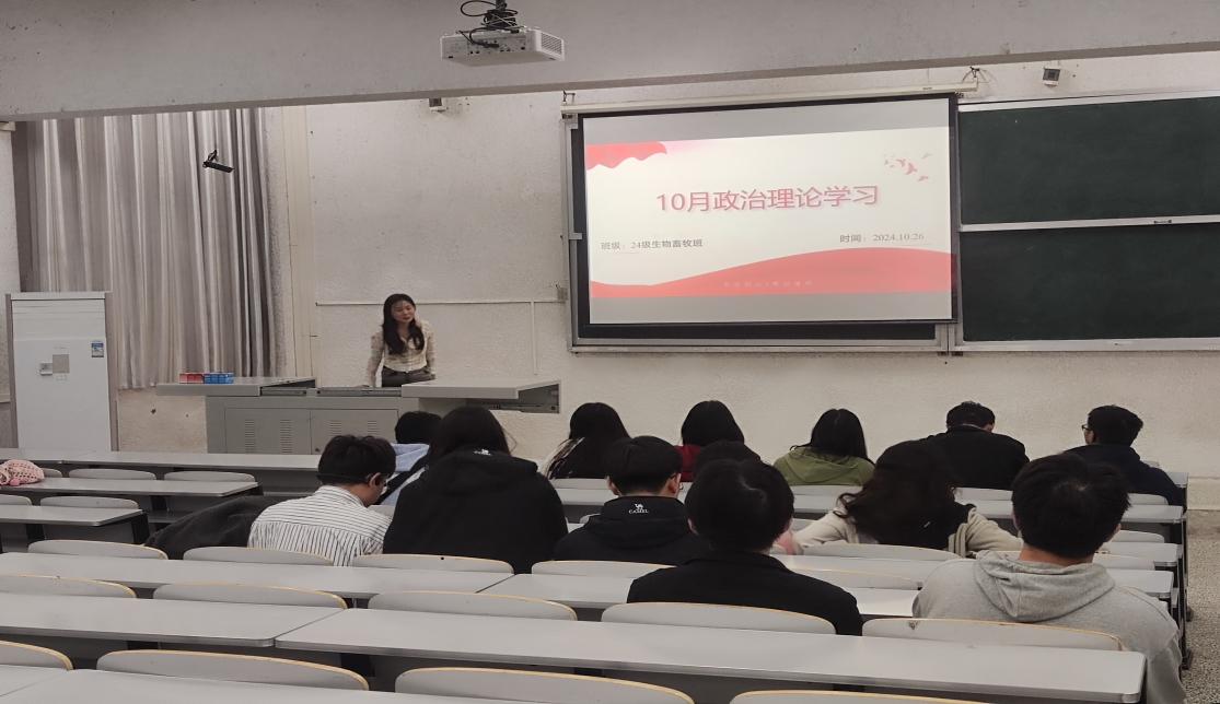 为深入学习贯彻习近平总书记近期重要讲话指示精神,进一步推动教育强国建设,弘扬教育精神,培养高素质人才,深入贯彻落实全国教育大会精神,激发研究生的学习热情和创新意识,动物科学技术院研究生于2024年10月18日-10月30日在各班举行了10月政治理论学习活动,本次会议以班级班会组织学习、讨论为主,利用学生业余时间自学等形式为辅,线上、线下学习相结合,使理论学习取得良好的效果,加深对教育事业发展的认识,同时为研究生提供一个交流学习的平台。会议由各专业班级负责人主持,回顾了全国教育大会的主要内容和精神,强调了教育在国家发展中的重要性。会议中,还邀请了几位优秀的同学代表分享他们对教育改革的看法和个人的学习心得。在互动环节,同学们积极发言,讨论了当前教育领域面临的挑战与机遇。大家一致认为,作为新时代的研究生,应当肩负起推动教育改革和发展的责任,努力提升自身的学术素养和实践能力。 本次政治理论学习主要内容如下: 习近平在全国教育大会上强调,紧紧围绕立德树人根本任务,朝着建成教育强国战略目标扎实迈进。 习近平在全国民族团结进步表彰大会上发表重要讲话强调,推进中华民族共同体建设,巩固发展中华民族大团结。 中华人民共和国国家勋章和国家荣誉称号颁授仪式在京隆重举行,习近平向国家勋章和国家荣誉称号获得者颁授勋章奖章并发表重要讲话。 庆祝中华人民共和国成立75周年招待会在京隆重举行习近平发表重要讲话。 《求是》杂志发表习近平总书记重要文章《大力弘扬伟大爱国主义精神,把强国建设、民族复兴伟业不断推向前进。 《求是》杂志发表习近平总书记重要文章在党的二十届三中全会第二次全体会议上的讲话。 本次政治理论学习圆满结束。同学们积极参与学习,分享了各自的学习心得,促进了政治理论思想与实践上的结合,本次学习引导同学们深刻理解个人命运与国家发展的紧密联系,强调青年学生的使命与责任,不忘初心,为实现中华民族伟大复兴的中国梦而不懈努力,回顾历史、展望未来,如何更好支撑和服务中国式现代化,增强了开放包容、互联互通、共同发展的意识,进一步树立清风正气,严守政治纪律,共同推动构建人类命运共同体。 (审核:王婷|编辑:董子敬 史博敏)