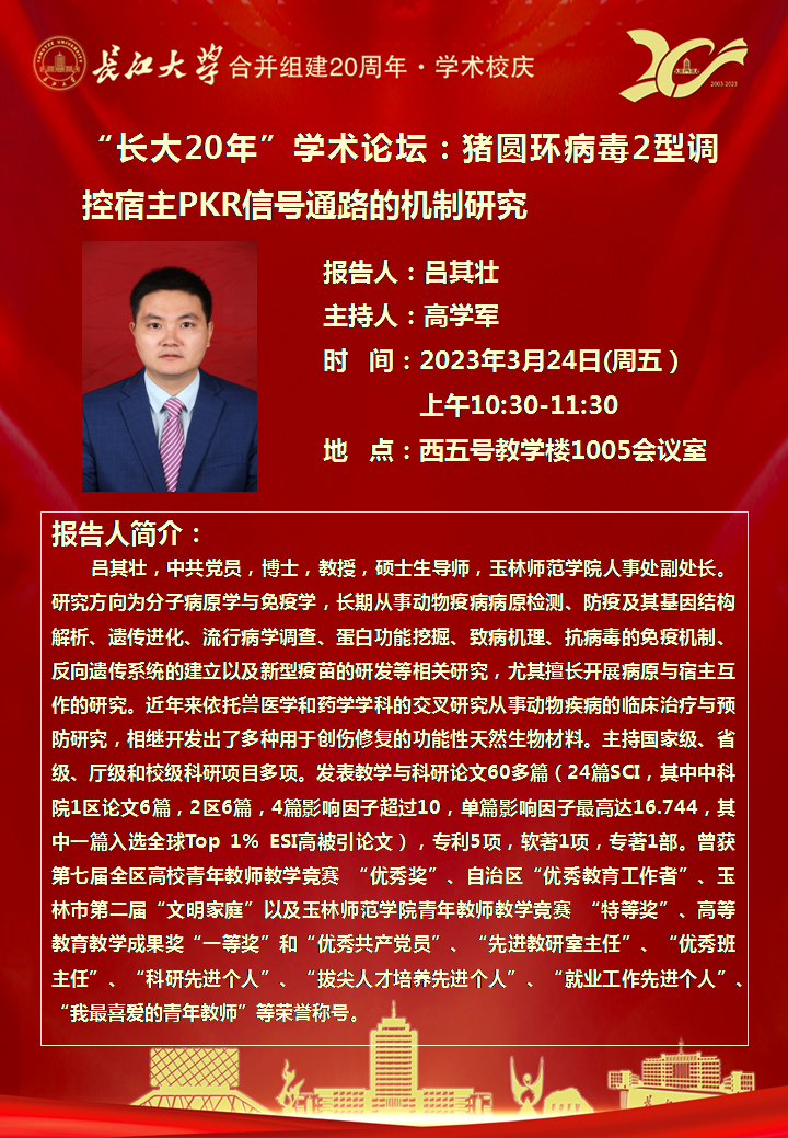 “长大20年”学术论坛暨动物科学学院2023年学术报告(第四讲)