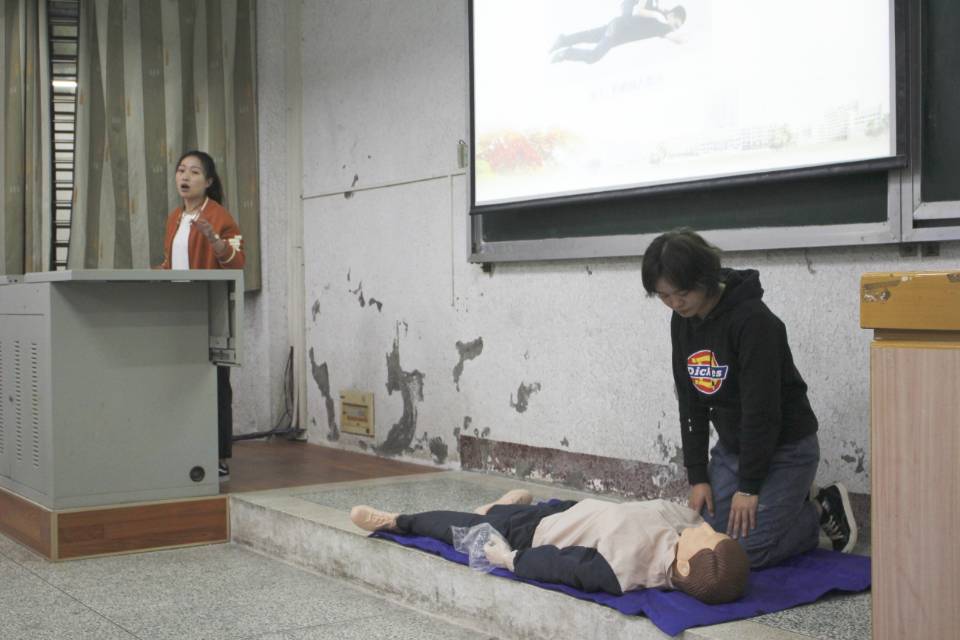 此次安全教育讲座主要包括理论和实践两部分。首先,陈老师从我们身边的意外事件着手,为同学们详细讲解了应急救援的相关安全知识。其次,刘老师亲自为同学们做了示范,极大的吸引了学生对安全急救知识的兴趣。最后,两位老师让几名同学亲自实践了一下,并指出需要注意的问题和容易出现的错误。