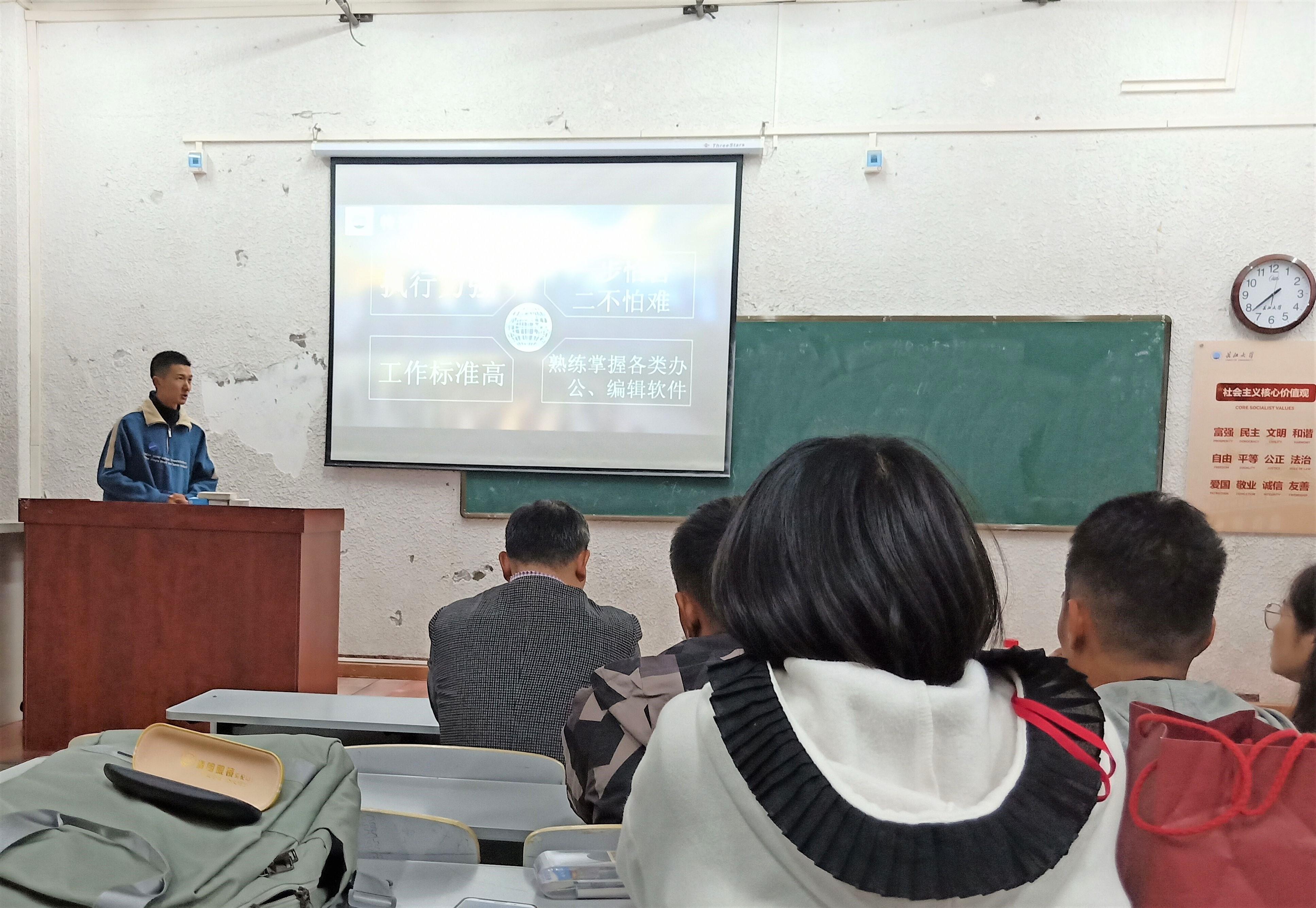 并指出需要考虑学生个人素质、家庭困难情况、学习成绩等选拔条件。最后苏书记表示本次面试对于所有上台参加竞选的同学而言,也是一次锻炼与突破。希望最终当选的同学可以有始有终,仔细认真的完成四年工作,希望所有参加竞选的同学以此为契机在日后的学习工作中可以继续前行,成为更好的自己。