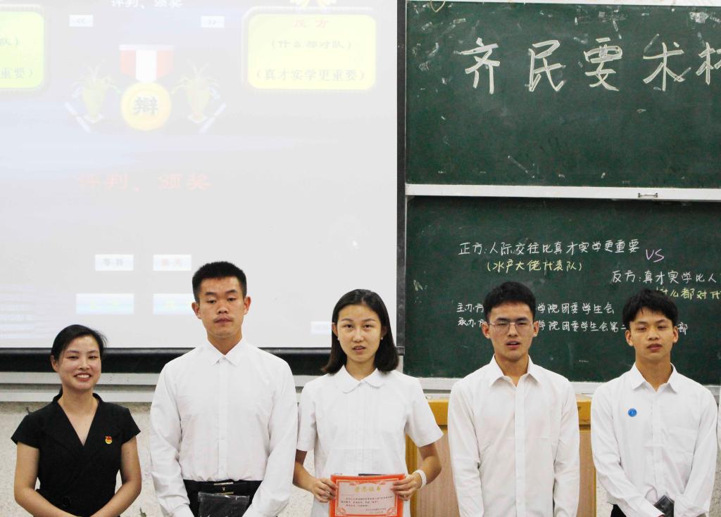 (通讯员 唐钦清/拍摄 袁茜)为了普及动科学子的辩论知识,锻炼大家的思辨能力,经过三轮的角逐,“齐民要术杯”辩论赛决赛于6月1日晚7时在五教103成功举行。莅临本次决赛的嘉宾有动物科学学院团委书记杨湘虹、18级辅导员王海洋和团委学生会主席周锦。评委为优秀辩手周泽湘、张信、王开开。