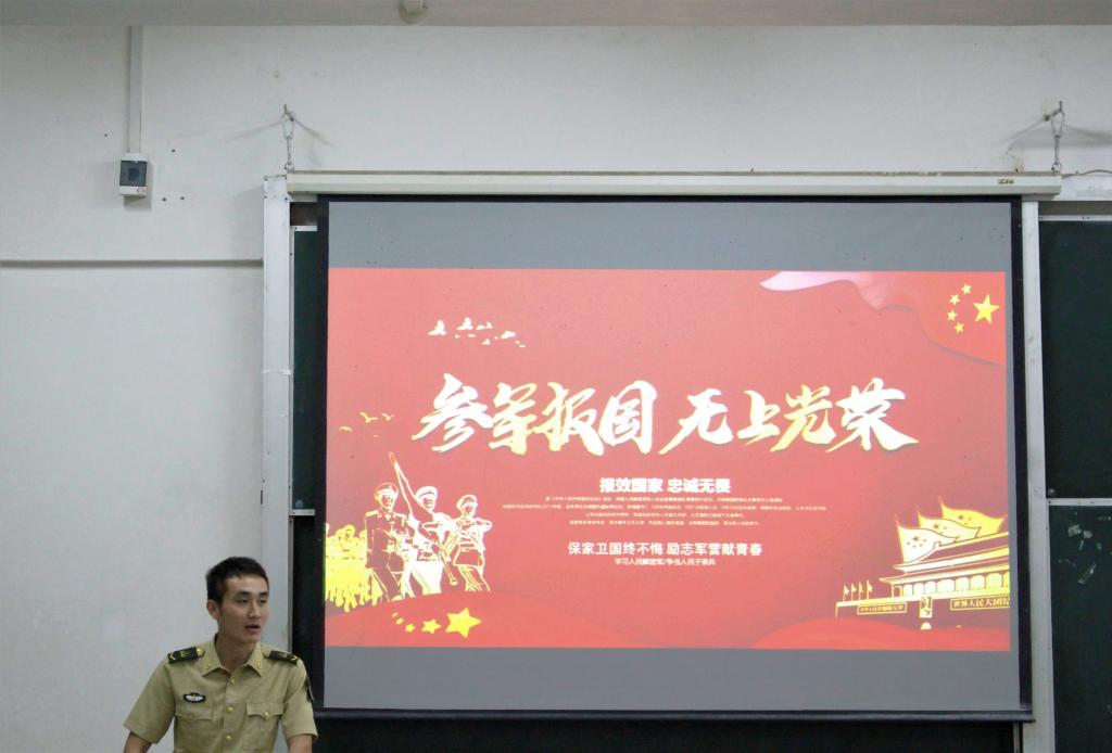 (通讯员 唐钦清/摄影员 柯婷婷)为了宣传征兵事宜,5月23日晚7时许,“动物科学学院2019年征兵宣传大会”在五教115成功举行。本次大会面向全体18级男生,有幸邀请到海军李万磊和火箭军韩王戴贤主讲。
