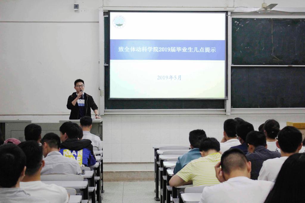 (通讯员:李月华 摄影:袁茜)大学四年时光转瞬即逝,又是一个毕业季,英国365官网2019届毕业生于5月21日晚7时在五教115举行了“动物科学学院2019届毕业生年级大会”。本次会议由动医卓31501班谢洋主持,党委副书记王雨、18级辅导员王海洋老师、15级辅导员齐书荣老师及15级全体学生参加此次会议。