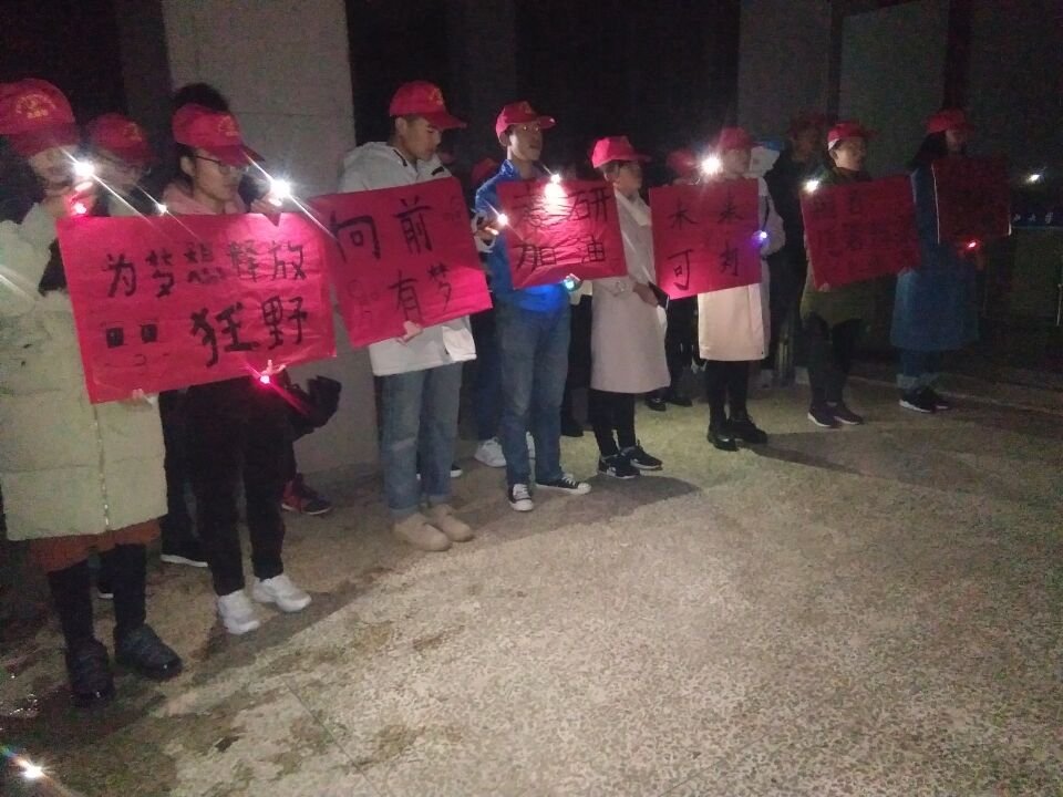 23日同一时间,由院团委学生会副书记黄青林和宣传部部长黄伟带头在校门口继续为同学们加油欢送。