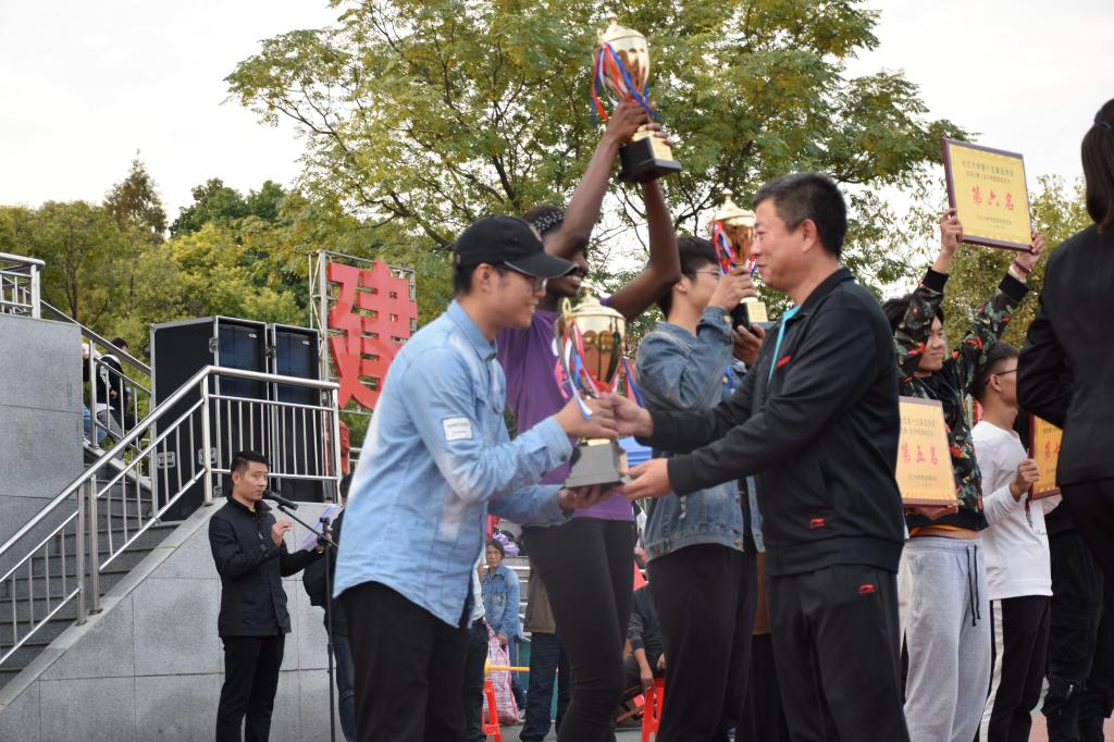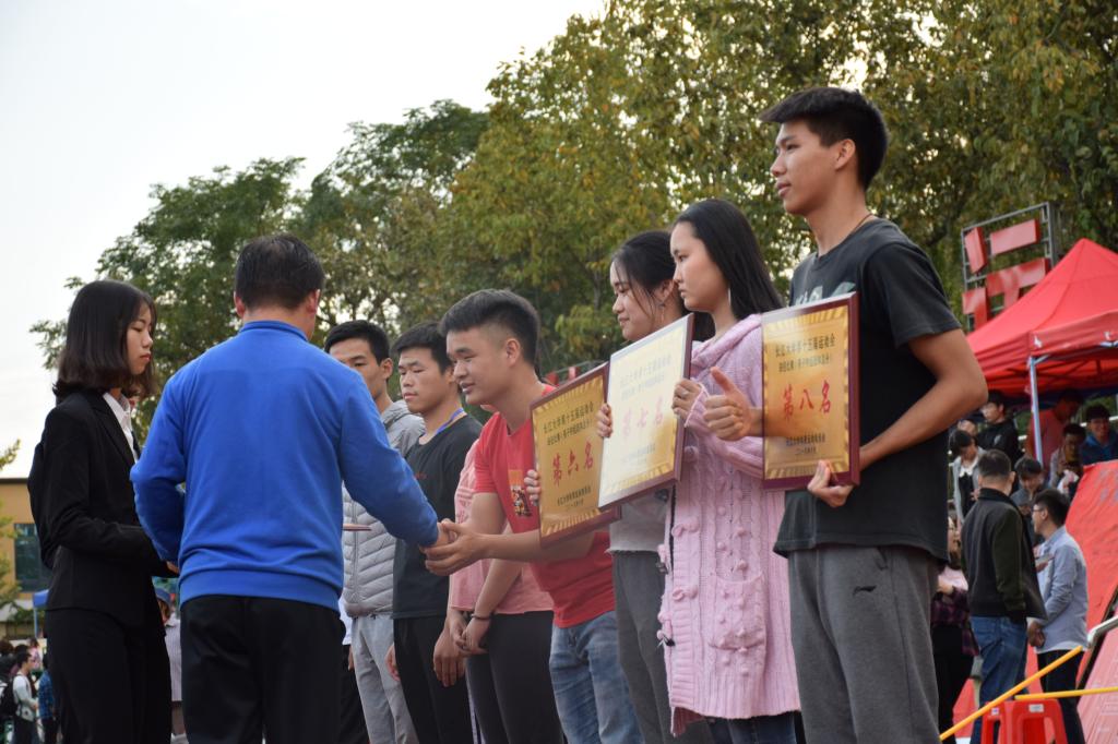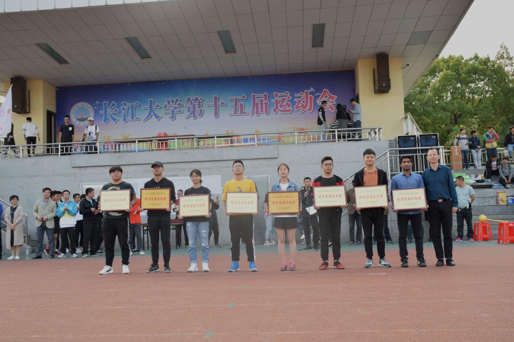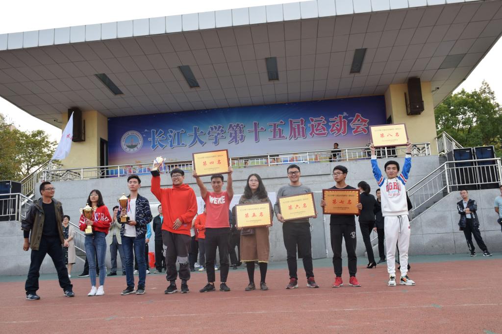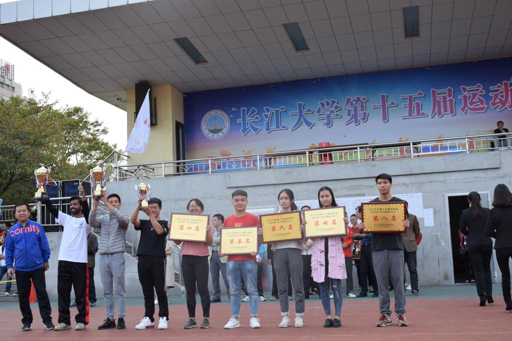 男子甲组团体第五名,田径比赛甲组团体第八名以及道德风尚奖。16届动科院学生会主席周锦、副主席邓芳衡、安委副主任张颖等人作为代表上台领奖。