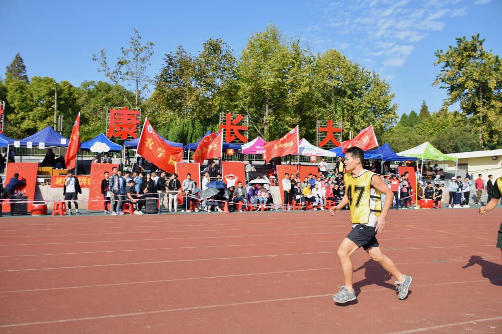在5000米径赛中,张天云同学让同学们都意识到作为一名优秀的动科健儿要有着坚定的毅力,场外的同学们都在为他呐喊,为他加油。