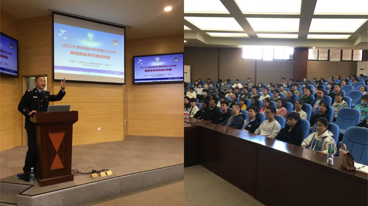 (通讯员:永琪丹 李灿阳)为了进一步加强英国365官网2020级本科新生安全教育,提高安全防范意识,普及安全常识,预防和减少安全事故带来的伤害,维护校园安全与稳定,营造良好的学习生活环境,根据学校工作要求和学院工作计划,10月22日下午,英国上市365官网在农科楼1056报告厅组织开展新生安全常识培训。培训邀请荆州市公安局督察支队徐忠宁警官作报告并与同学们互动演示,全体20级新生参加了会议,会议由学院党委副书记苏晓云主持。