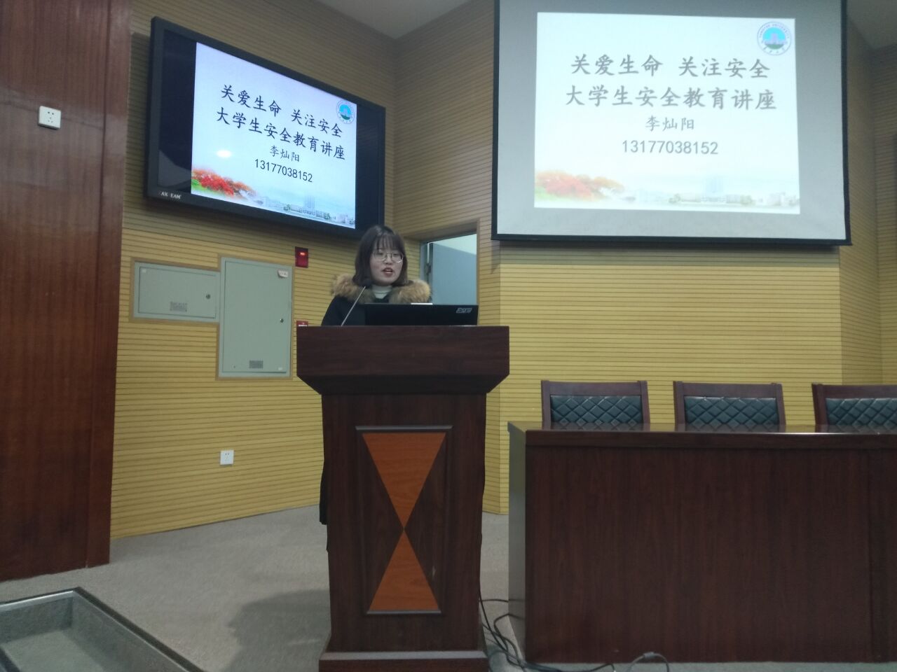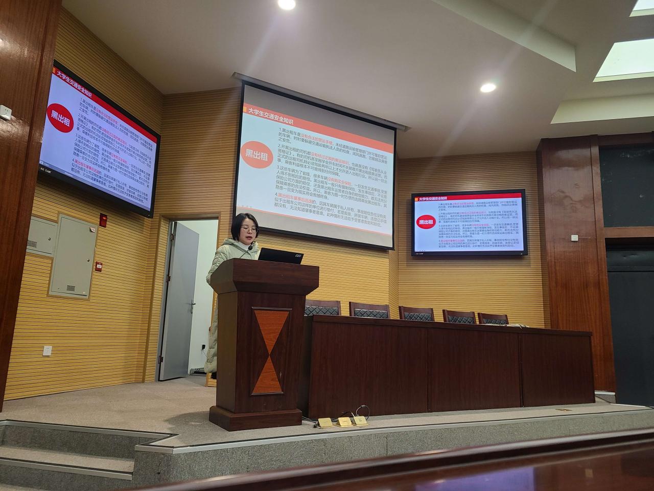 讲座主要围绕大学生食宿与交通安全教育、防盗、防火、防溺水安全教育、防毒、防艾滋、防恐安全教育、网络与国家公共安全教育以及心理健康教育等五个方面开展。对于不同专题的安全教育内容,老师们都以图文并茂的形式给同学们进行细致讲解。并结合大学生的案例做具体分析,同学们在轻松活跃的氛围中学习生命安全的相关知识。
