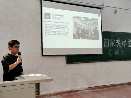大会伊始,陆老师为大家详细地介绍了本次国家奖学金评定细则,并由主持人向各评委老师分发评分表。在一片掌声中,7名优秀的动科学子依次上台答辩,他们通过PPT讲解的方式向同学们展示了自己丰富的大学生活及各种突出事迹。其中,19级靳洪振同学长期专业排名第一且荣获第七届“互联网+”湖北省银奖;18级周凡婷同学正在申请“犬猫鼻泪管疏通技术”的专利;同级胡挺财同学凭借多个大创项目荣获了省级和校级各类竞赛的荣誉证书,他还积极参与到志愿服务等社会实践当中,不仅以优异的成绩拔得头筹,还用丰硕的工作成果赢得在场师生的赞叹。