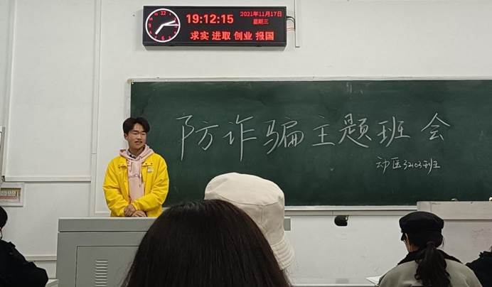 (通讯员:杨湘虹 凤昊)科技发展的日新月异,信息网络普及我们的生活,但这也让很多不法分子趁虚而入,侵蚀网络空间。他们利用电话、QQ 、微信号、邮箱等作案手段不断翻新。为提高同学们的防范意识,保障财产安全,英国365官网于2021年11月17日在晚自习期间组织大一同学以班级为单位举办防诈骗主题班会、动医32101班班主任张佳兰、21级辅导员杨湘虹,兼职辅导员严子星参加了本次班会。