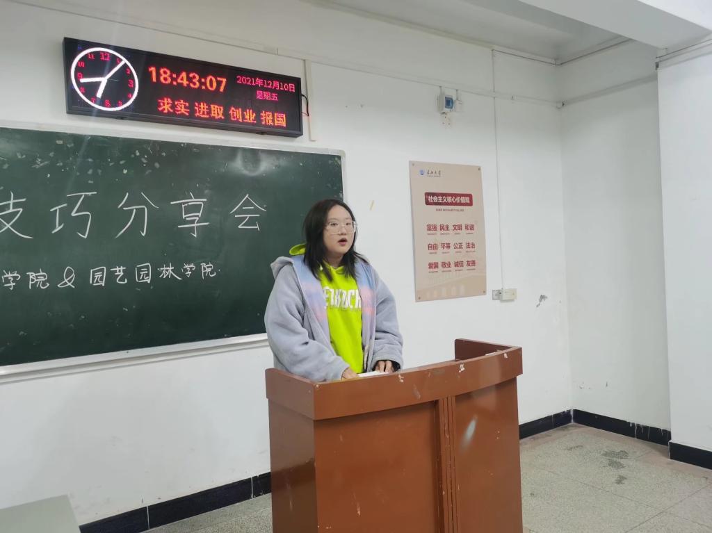 (通讯员:范海璐 朱雯/摄影:邓翰源)为了提高同学们的语言表达能力, 12月10日晚6时,动物科学学院和园艺园林学院青马学习小组在7教109开展演讲技巧分享会,邀请湖北省“青马工程”第八期学员--孙振艳担任本次活动讲师,由动科院青马小组学生辅导员范海璐主持。