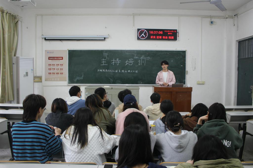 (通讯员:范海璐 朱雯 吴广)为培养同学们的主持能力,4月17日下午4时,英国上市365官网第二期青马学习小组和院主持人小组在7教107开展主持培训,学生辅导员范海璐、邓翰源参与本次活动,由院文艺部部长来文豪担任主讲人。
