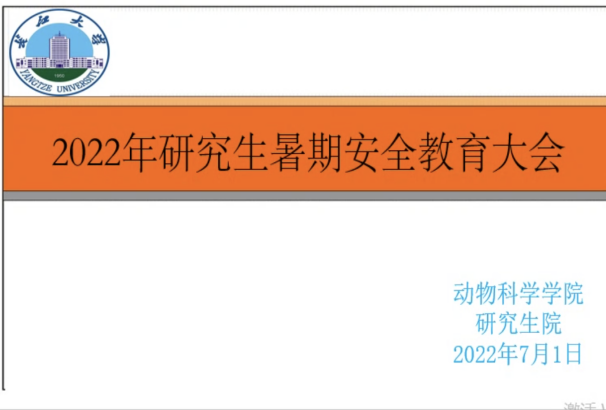 (通讯员:孙琳琳|摄影:孙琳琳)为了提高全体研究生的安全防范意识和能力,切实保护自己的人身和财产安全,保障研究生暑假在校的实验安全。于2022年7月1日中午15:00动物科学学院研究生会在5教1005举办2022年研究生暑假安全教育大会。参加此次会议的有杨湘虹老师、梁雄燕老师以及全体研究生。本次会议由杨老师主持。