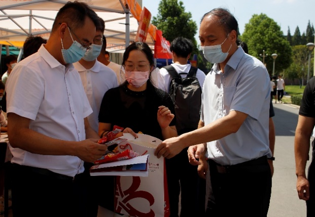学院各位老师叮嘱大家要本着服务新生的理念,安全有序、热情周到地做好迎新工作,把工作做细、做实,确保迎新的各个环节高效顺利地进行,在新生报到处,院党委书记熊新山详细了解了新生注册报道进展情况并耐心询问小班们报到流程等细节问题,提醒志愿者们要与学弟学妹们交心,很多学生是第一次远离家门,独自来到陌生的城市,要多关注多关心他们来到学校心理变化,及时解决他们在学习和生活上遇到的困难,并新生们亲切合影留念。