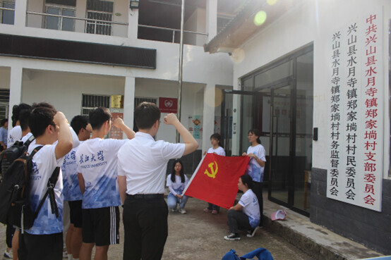 图为晨曦志愿服务队在村委会门前重温入党誓词。
