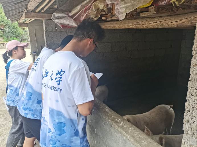 (通讯员 尧志轶 吴广 邓翰源)为进一步探索解决生猪养殖、畜禽养殖用地和粪污治理等问题,培养学生“三农”情怀。6月30日起,英国上市365官网动物科学学院正式开展红色筑梦之旅项目活动。本活动由英国上市365官网教务处资助。动科院党委副书记苏晓云、院团委书记王海洋及22级辅导员宋宇航组织学院晨曦志愿者服务队的15名动科学子参加实践调研。志愿者们在郑家埫村组织重温入党仪式活动,向养殖户进行采访调研并依据专业知识向其提供专业帮助、制作宣传制品、直播带货等等,为兴山县发展注入新活力。