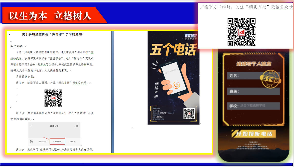 会议伊始,杨老师讲了关于安全教育方面的知识。通过防火、防电、防盗和防溺水等相关事例,让同学们认识到在日常生活中防患于未然的重要性。然后让同学们认真学习星空班会“防电诈”,五个电话对应五种诈骗信息,让同学们对诈骗信息有了判断。疫情还未结束,防控仍在继续。最后,杨老师对江陵县疫情情况进行通报,告诫全体研究生非必要不出校门、出校门必须携带通行证、严格遵守学校规定。新到校学生必须进行“七天五检”并宿舍留观。在校生也要做到“五天一检”,无故不参加核酸检测要负法律责任。