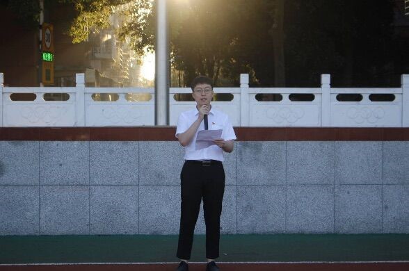 七点整,升旗仪式准时开始,国旗护卫队迈着整齐的步伐,缓缓将国旗送至旗台。伴随着雄壮嘹亮的国歌声,鲜艳的五星红旗迎着灿烂的朝霞冉冉升起,全体师生面向国旗,庄严行注目礼。