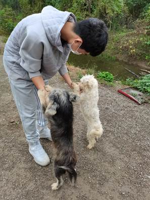 接着,志愿者们进入围栏,与流浪犬们亲密接触。这些“毛孩子”十分友好,有的安静卧倒在地,接受大家的抚摸;有的则是和志愿者们嬉戏玩耍,气氛十分融洽。保护流浪犬,不仅需要给它们提供居所和食物,也需要给予它们陪伴和爱。