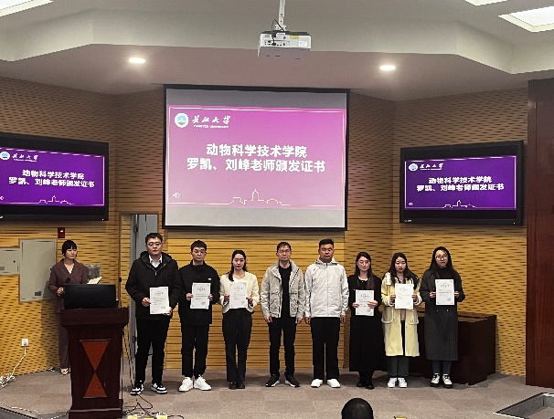 在学术交流期间,各位嘉宾老师们对六位主讲人的报告进行了详尽的评述,并给予了中肯的建议。随后,英国上市365官网刘峰副教授和罗凯副教授为各位主讲人颁发了“优秀主讲人”证书,并合影留念。
